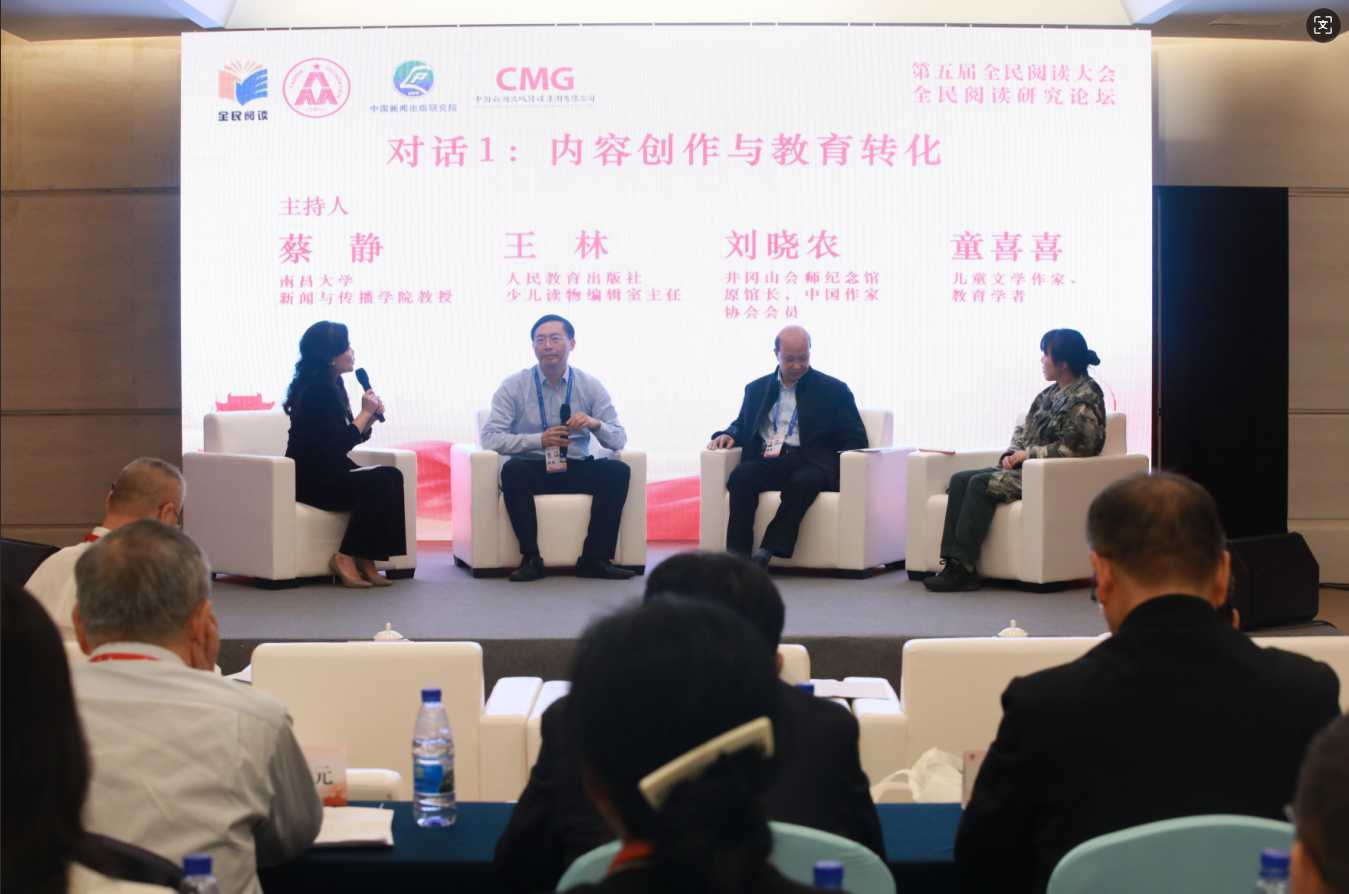论坛特别设置两场主题对话,聚焦“红色经典阅读的传播与创新”。第一场对话围绕“内容创作与教育转化”展开,人民教育出版社少儿读物编辑室主任王林,井冈山会师纪念馆原馆长、中国作家协会会员刘晓农,儿童文学作家、教育学者童喜喜分别从少儿出版、红色资源研究与儿童阅读推广角度分享经验,强调红色经典创作要扎根生活、教育转化要遵循规律。第二场对话以“传播生态与市场创新”为主题,中国教育报常务副总编辑张圣华、北京开卷信息技术有限公司首席研究员杨伟、哈尔滨慧文书院文化传媒集团董事长白云鹏从媒体传播、数据洞察与渠道创新维度,探讨构建“媒体+数据+渠道”立体生态,让红色精神以更鲜活方式触达广泛人群。